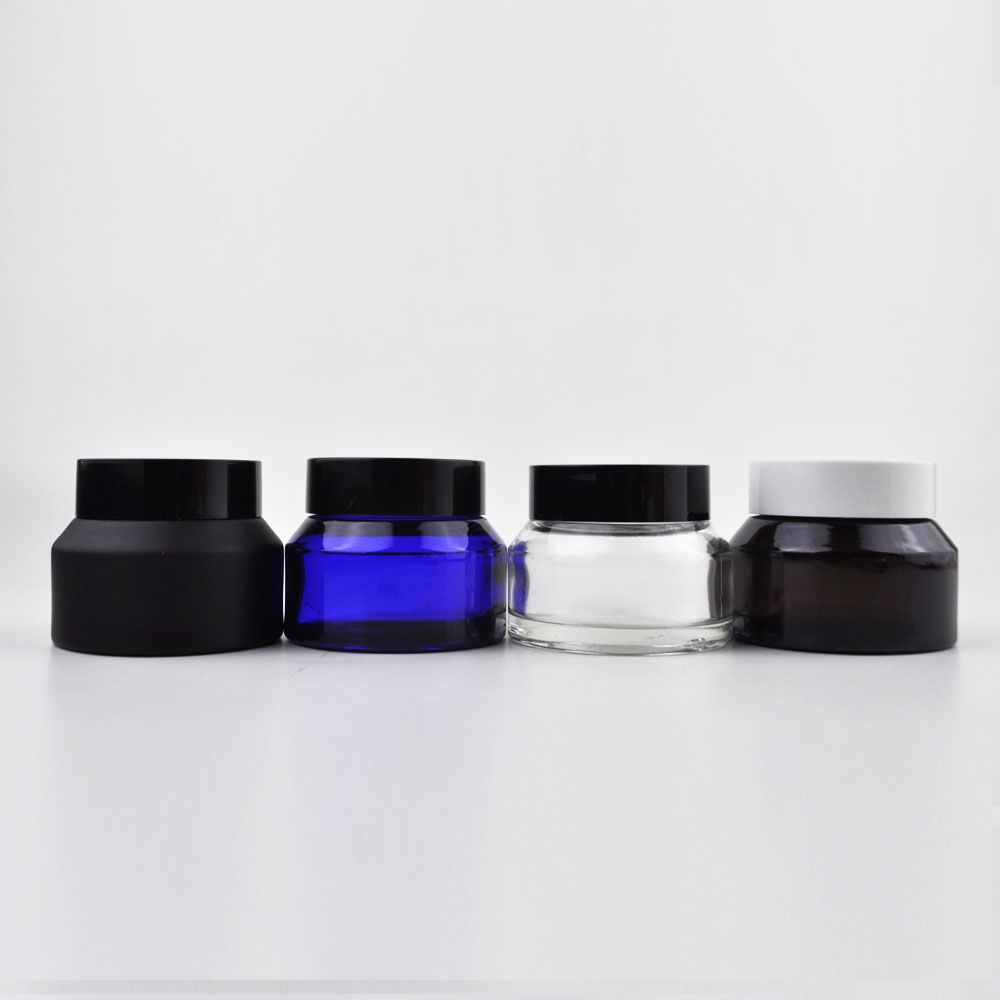 Hot Selling Sloped Shoulder Glass Jars 30g 50g 100g Slant Shoulder Cosmetic Containers Green/blue/white/black Cream Jars
